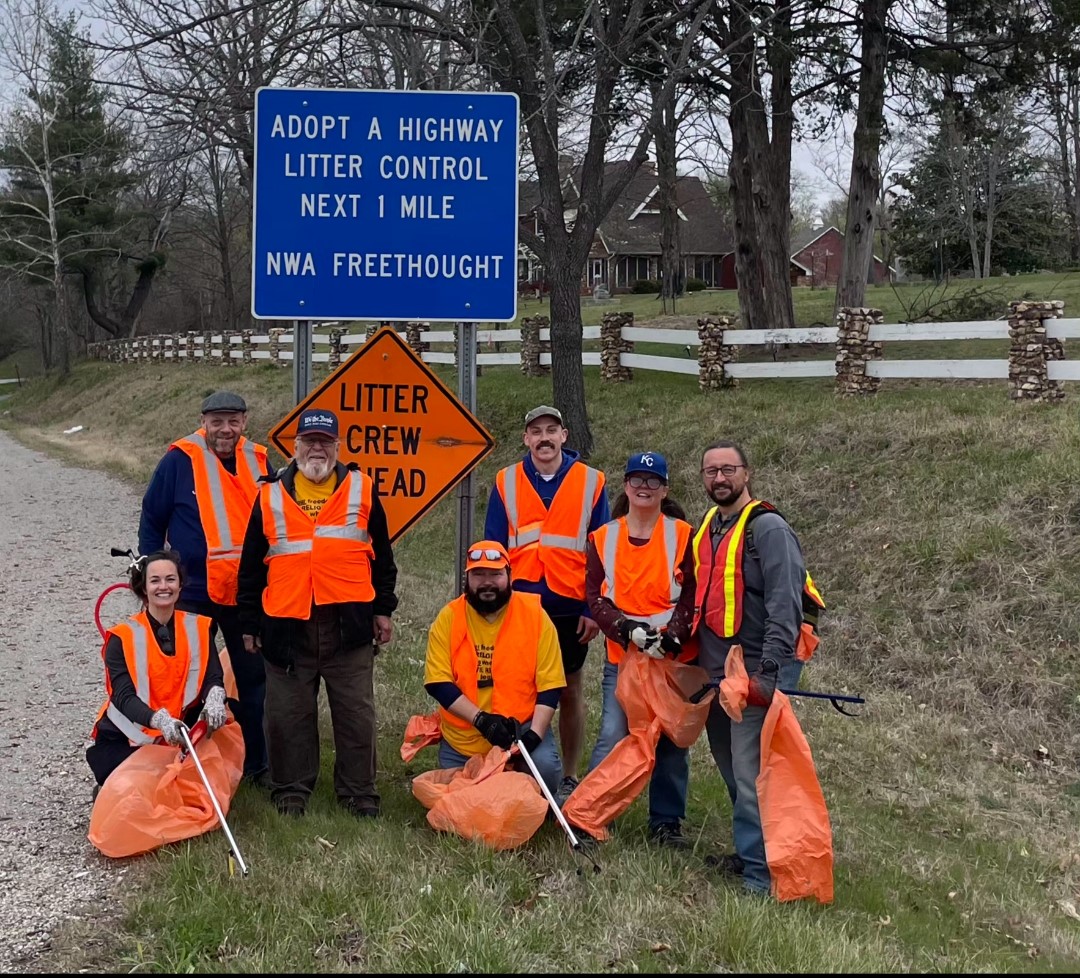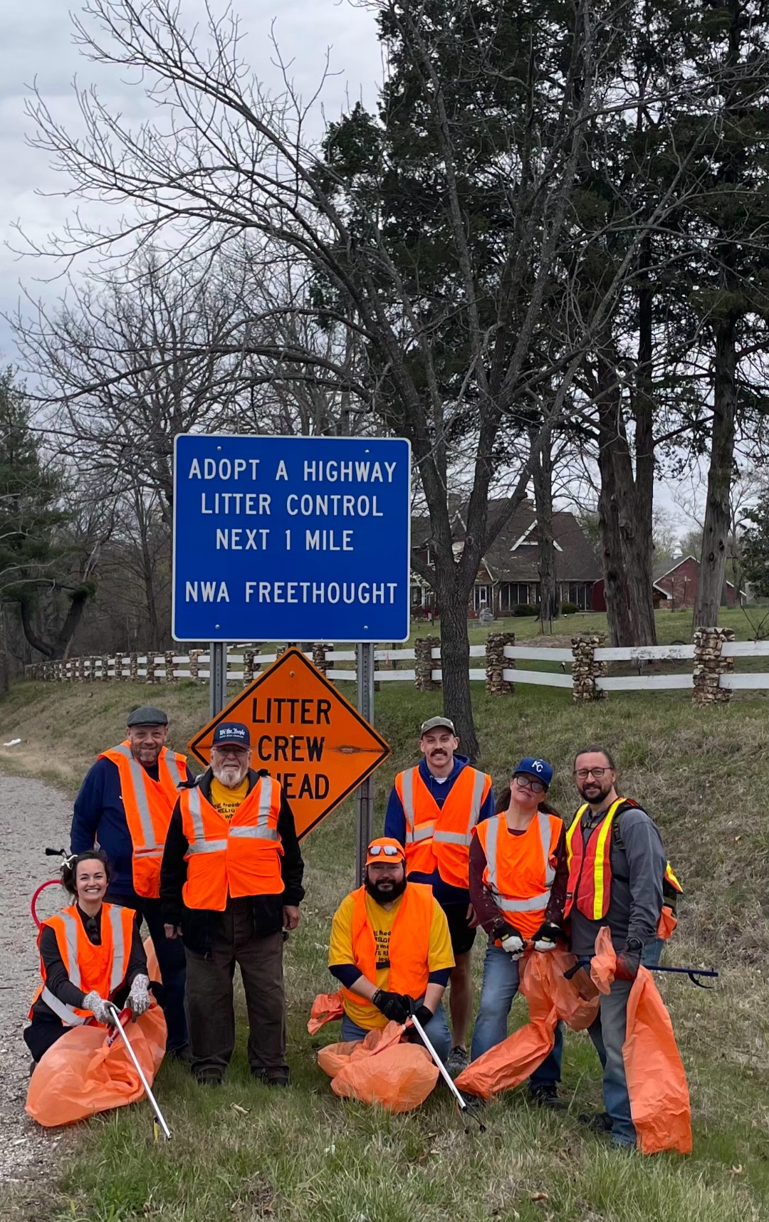 We had 8 members join in for the road side clean up on March 29th. This is a join venture with the NWA Freethought Group. Thanks Everyone!!!